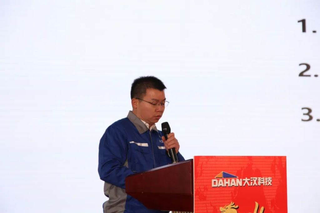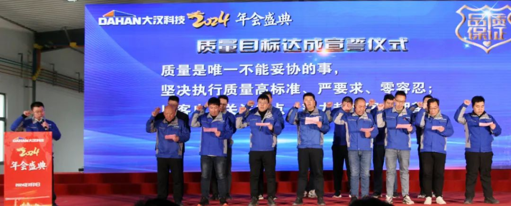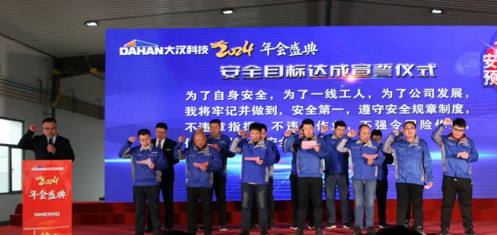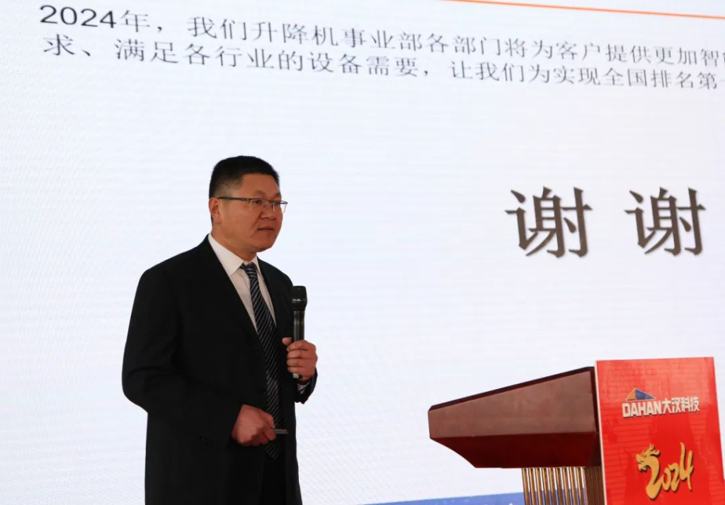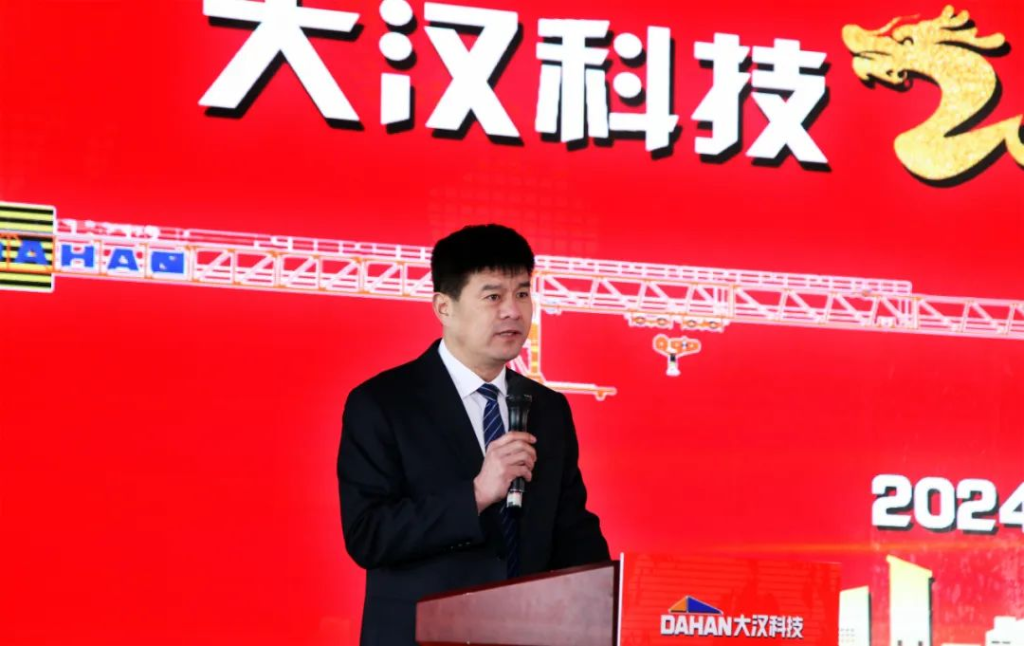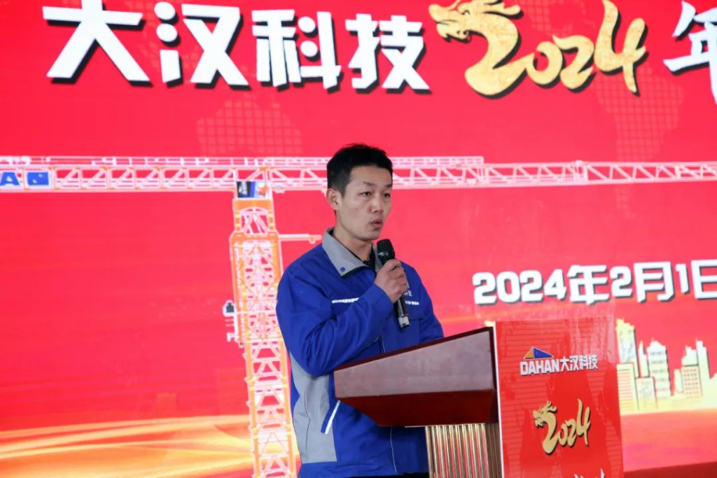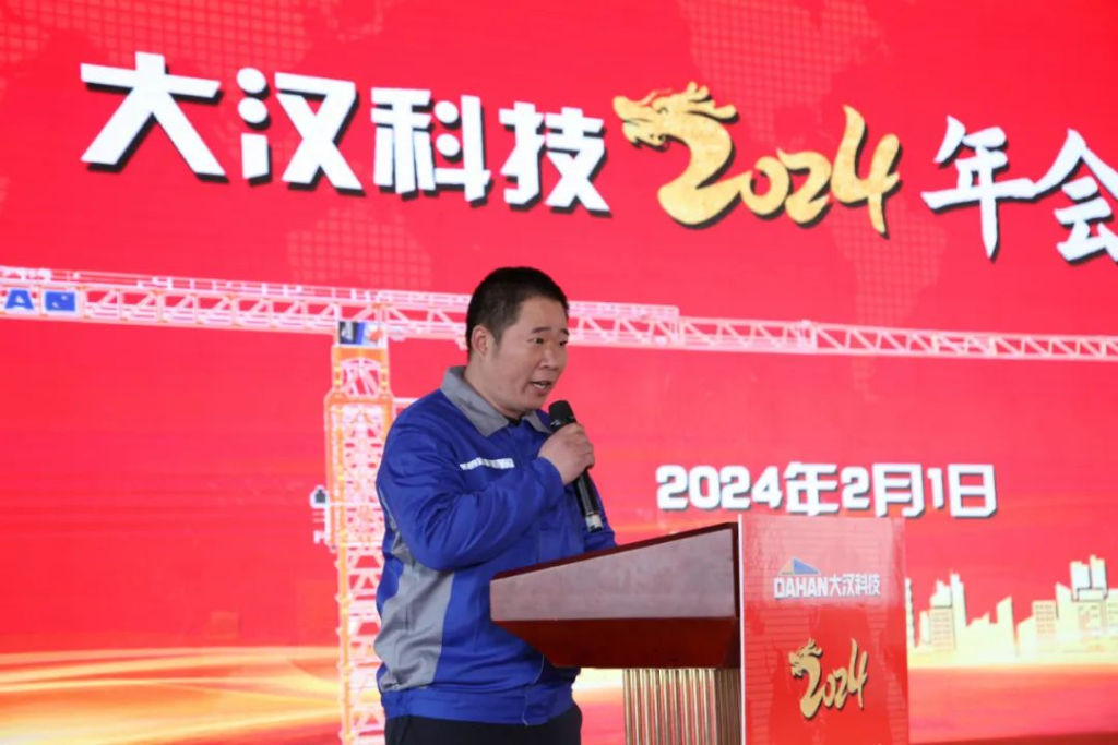 當(dāng)清晨的第一縷陽光點綴起錦繡山河的壯美和云霧潤蒸的泉韻,大漢科技2024年會盛典在希望和美好的期許中如約而至。2024年2月1日,大漢科技2024年會盛典隆重舉行,公司董事長康與宙、常務(wù)副總裁李俊池以及600多名員工參加了年會盛典。在當(dāng)前智能化飛速發(fā)展的技術(shù)迭新時代,圍繞建機行業(yè)數(shù)字化、工業(yè)化、智能化相融合的新趨勢,大漢科技作為行業(yè)頭部企業(yè)致力于推動公司智能制造、數(shù)字轉(zhuǎn)型,用匠心和專業(yè)打造的智能產(chǎn)品聯(lián)動智慧未來,構(gòu)建產(chǎn)業(yè)發(fā)展新格局,持續(xù)在奮進新征程中攻堅克難,銳意進取,持續(xù)保持中國建機行業(yè)前三強。憶往昔,崢嶸歲月。在千村寥落、狼煙四起的戰(zhàn)爭年代,需要大好華夏兒女精忠報國;看今朝,信心滿懷。在山河遠闊、國泰民安的和平時代,更需要新的一代人精忠報國。一曲由升降機事業(yè)部選送的大合唱《精忠報國》,瞬間點燃起在座的每一位大漢員工的豪邁激情,激勵我們每個人都要愛祖國、愛大漢、愛崗位。在市場形勢發(fā)生巨大變化,競爭異常激烈的2023年,銷售精英一路披荊斬棘、奮力拼搏,把銷售團隊業(yè)績潛力充分發(fā)揮出來。公司常務(wù)副總裁李俊池李總對2023年的銷售工作進行了全面回顧,并分享了2024年的銷售目標、計劃和措施,勉勵大漢全體銷售精英無懼挑戰(zhàn)、奮勇向前,創(chuàng)造新的業(yè)績!在全球經(jīng)濟一體化和國家"一帶一路"總規(guī)劃大背景下,大漢科技用智能創(chuàng)造價值,用智慧聯(lián)動未來,強力推出高性價比的DH系列塔式起重機和智能施工升降機與世界接軌,與世界融合,成長為一家具有全球化戰(zhàn)略布局的行業(yè)領(lǐng)軍企業(yè),而外貿(mào)出口業(yè)務(wù)在2023年更是實現(xiàn)國際市場銷售新突破。外貿(mào)部負責(zé)人王丹王總分享了公司外貿(mào)出口的總結(jié)以及新銷售目標、措施。通過分享,我們了解到大漢科技已與全球50多個國家和地區(qū)的經(jīng)銷商建立合作共贏機制,為這些國家和地區(qū)的建設(shè)項目提供智能化、數(shù)字化、綠色化以及高性價比的建筑機械產(chǎn)品及系統(tǒng)解決方案,祝愿外貿(mào)團隊持續(xù)開創(chuàng)融合共贏新局面,持續(xù)開創(chuàng)國際市場新格局!