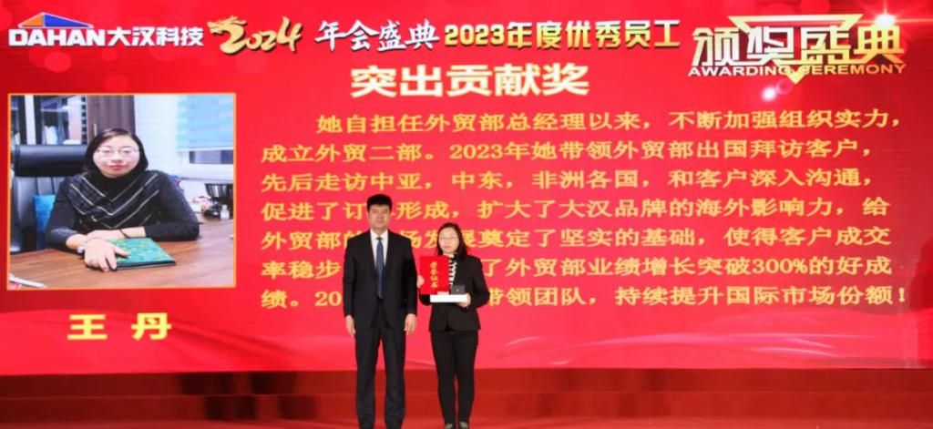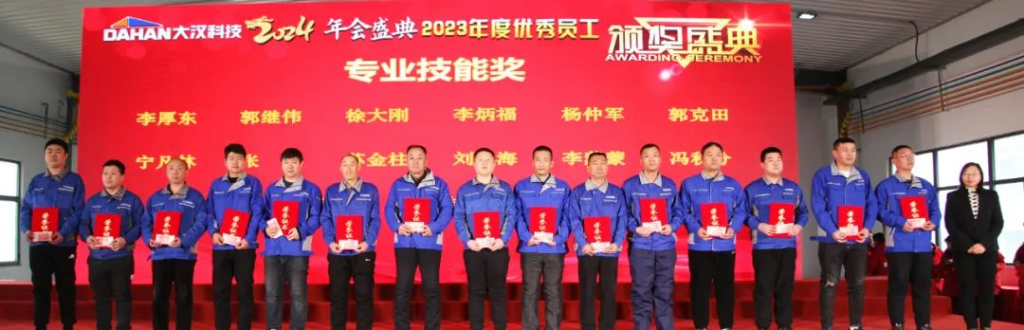 一程風(fēng)雨,一程陽光;一路耕耘,一路收獲;是一載一載的風(fēng)華,鑄就了大漢科技的參天氣魄,是一個又一個的榮耀,串聯(lián)起大漢科技的恢弘篇章。在隆重的頒獎環(huán)節(jié),分別對評選出的公司突出貢獻獎、十大人物、銷售標兵、優(yōu)秀業(yè)務(wù)員以及專業(yè)技能獲得者進行了獎勵。