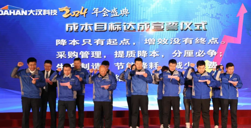 銷售、質(zhì)量、安全、成本四大體系團隊相關(guān)代表人員舉行了慷慨激昂的目標達成宣誓儀式。