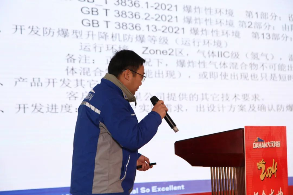 公司塔機、升降機事業(yè)部,塔機、升降機技術(shù),質(zhì)量、安全、成本管理等部門負責(zé)人分別分享了2023年相關(guān)工作總結(jié)和2024年的具體計劃和措施。