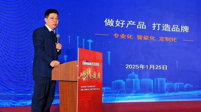 公司董事長康與宙康總在年會盛典上作重要講話,康總說在2024年大漢科技加大核心技術(shù)研發(fā)投入,持續(xù)提升技術(shù)創(chuàng)新能力,通過全體員工的共同努力,在廣大經(jīng)銷商和客戶的支持下,國內(nèi)市場份額持續(xù)保持在整個行業(yè)的前三位。大漢塔機、升降機產(chǎn)品在多個核電項目、跨江跨海大橋項目、火電項目、超高層項目進行使用,并且在國內(nèi)一些標志性建筑、地標性建筑得到廣泛應(yīng)用。特別是2500噸米風(fēng)電大塔產(chǎn)品的全新研發(fā)和投產(chǎn),實現(xiàn)了大型塔機研發(fā)的新高度、新水平。康總表示在新的一年里,大漢科技將以“技術(shù)創(chuàng)新為引領(lǐng),持續(xù)推進塔機大型化,產(chǎn)品智能化、綠色化、高端化、國際化的開發(fā)與制造水平;持續(xù)推進國內(nèi)、國際銷售市場雙循環(huán)發(fā)展;持續(xù)推進由高性價比向高質(zhì)量性價比向高端品牌、國際品牌發(fā)展戰(zhàn)略”。通過技術(shù)創(chuàng)新,智能制造+工匠精神,技術(shù)+金融+售后服務(wù),品牌提升,新產(chǎn)品上市(使整個產(chǎn)品線更加豐富、個性化),10大應(yīng)用領(lǐng)域(包括橋梁、電力、鐵路、公路、機場、港口、石化、造船、場館、超高層)以及國際市場等方面實現(xiàn)突破和發(fā)展。大漢科技2025年會盛典在充滿團結(jié)協(xié)作精神、增強團隊意識的大合唱《眾人劃槳開大船》歌曲中落下帷幕。向未來,賦新生。2025年,大漢科技將聚焦技術(shù)創(chuàng)新+新品上市,聚焦智能制造+工匠精神,聚焦技術(shù)+金融+售后服務(wù),聚焦大漢科技品牌提升,聚焦國內(nèi)十大領(lǐng)域應(yīng)用,聚焦國際市場新突破,全力開啟大漢科技新的發(fā)展篇章!