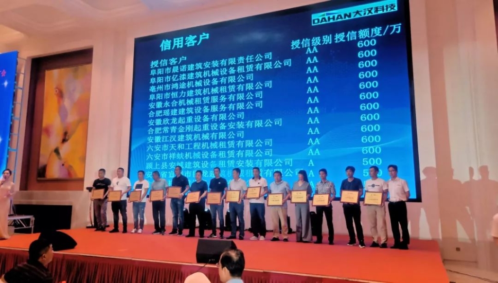 本著誠實(shí)守信、互惠互利、優(yōu)勢互補(bǔ)的原則,大漢科技優(yōu)選出10家安徽省的戰(zhàn)略合作伙伴,在今后的發(fā)展過程過結(jié)成長期共同發(fā)展聯(lián)盟,互相支持、共同發(fā)展,實(shí)現(xiàn)雙贏,公司董事長康與宙為大漢科技安徽銷售區(qū)域十大客戶進(jìn)行了戰(zhàn)略合作授牌。同時(shí)針對安徽銷售區(qū)域,實(shí)現(xiàn)以互信為基礎(chǔ),以融資促發(fā)展,以發(fā)展成規(guī)模,使廣大租賃商客戶朋友們更好、更快發(fā)展,也為了讓客戶更好的滿足現(xiàn)在租賃市場對設(shè)備的需求,大漢科技甄選出安徽銷售區(qū)域28家優(yōu)質(zhì)客戶并提供全方位授信服務(wù),公司常務(wù)副總裁李俊池、副總經(jīng)理張永峰為這28家優(yōu)質(zhì)客戶頒發(fā)了授信獎(jiǎng)牌。